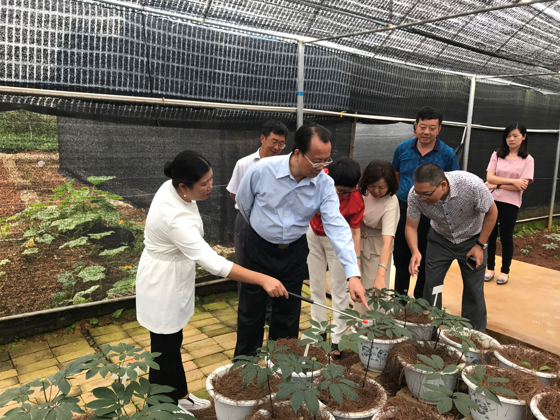 首先,田藝副總帶領(lǐng)杜黎明副主任一行參觀了公司科普長(zhǎng)廊,田藝副總向杜黎明副主任一行詳細(xì)介紹了科普長(zhǎng)廊的內(nèi)容、公司已經(jīng)取得的專利成果作及對(duì)行業(yè)的貢獻(xiàn)等。在三七連作障礙PK平臺(tái)試驗(yàn)地,田藝副總就三七產(chǎn)業(yè)當(dāng)前面臨的三七連作障礙、三七病害和無(wú)農(nóng)藥栽培、重金屬殘留等嚴(yán)峻問(wèn)題做了詳細(xì)介紹,以及公司為克服以上難題所進(jìn)行的科研實(shí)驗(yàn)和開展的工作情況。人大常委會(huì)副主任杜黎明對(duì)公司在行業(yè)中作出的貢獻(xiàn)表示認(rèn)同,并指出苗鄉(xiāng)三七不光是輸出理念和技術(shù),更是作為行業(yè)的標(biāo)桿實(shí)現(xiàn)標(biāo)準(zhǔn)輸出,希望苗鄉(xiāng)三七發(fā)展越來(lái)越好,做好三七產(chǎn)業(yè)的排頭兵。